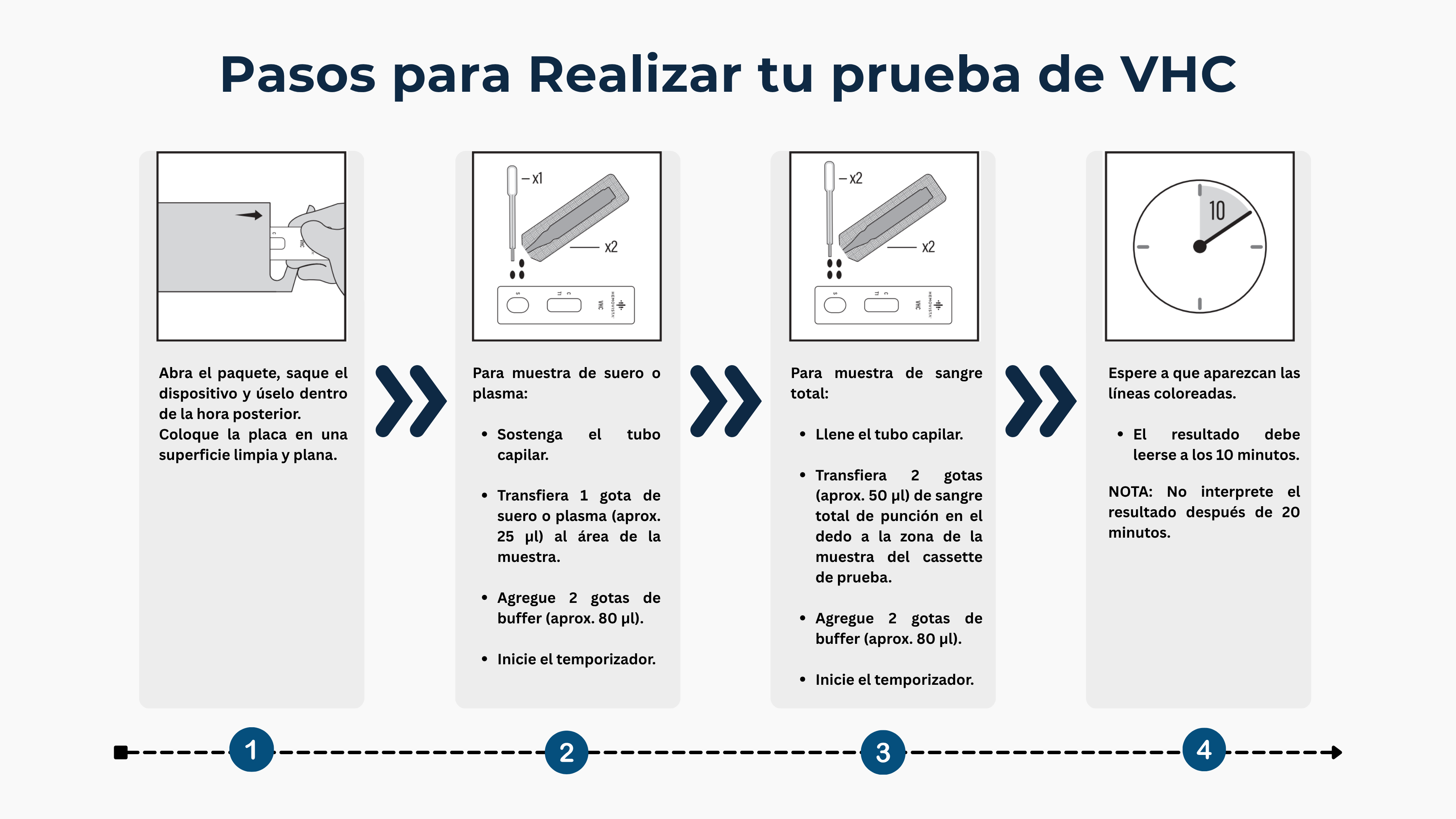Dentro de tu kit encontrarás un instructivo impreso y, en la parte inferior de esta página, los pasos completos detallados para realizar la prueba de Hepatitis C.