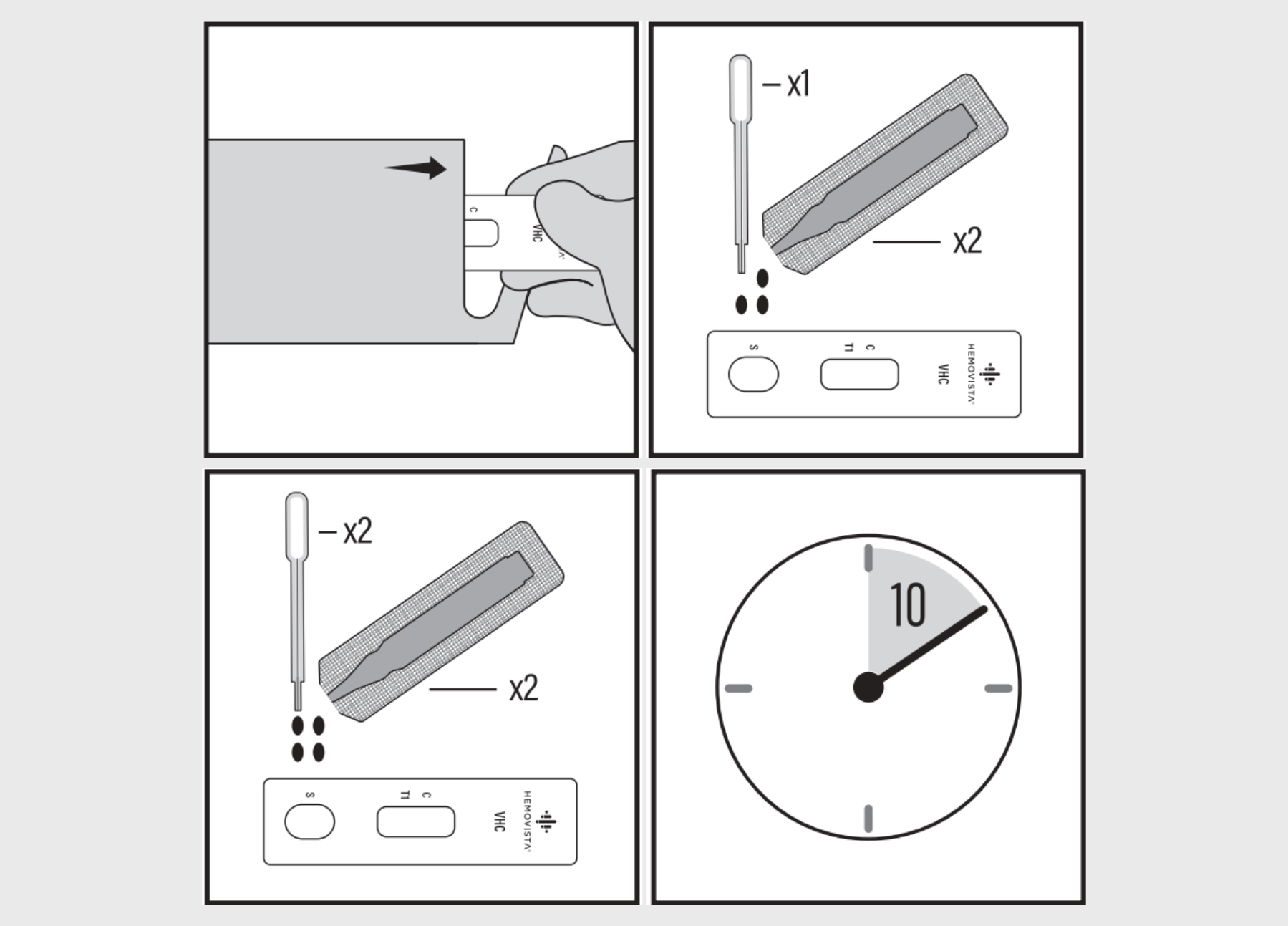Abre tu kit y localiza los elementos de la prueba de Hepatitis C, que incluye: