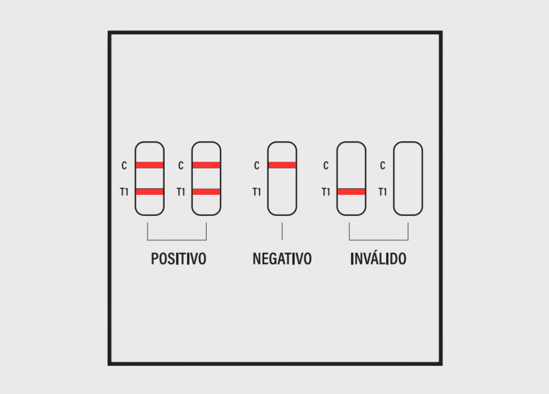 ➤ INVÁLIDO: Si no se observa la línea de control de calidad C, la prueba no será válida independientemente de si hay una línea de detección (como se muestra en la figura anterior) y la prueba deberá ser realizada nuevamente.