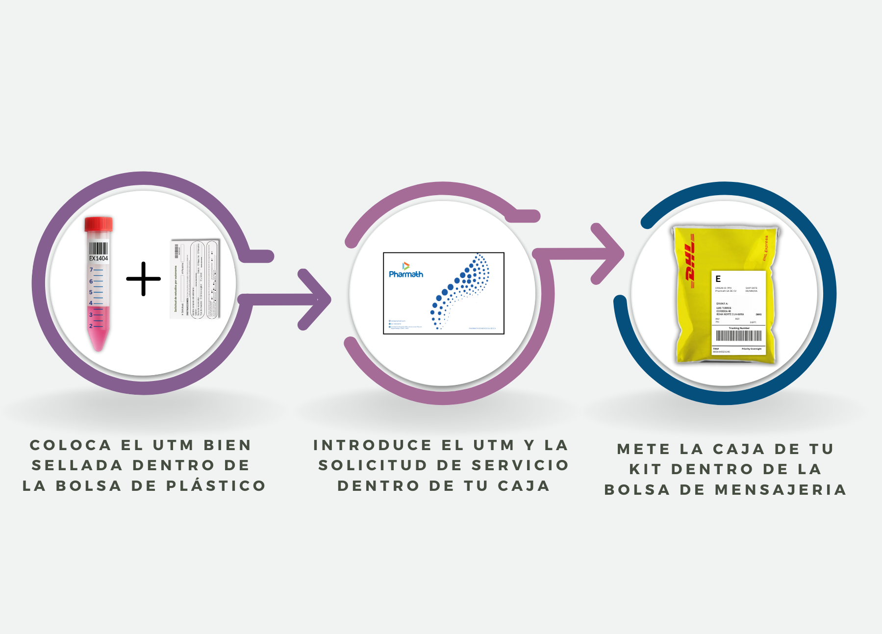 - Posteriormente, envía la muestra al laboratorio utilizando la guía de envío prepagada de mensajería.