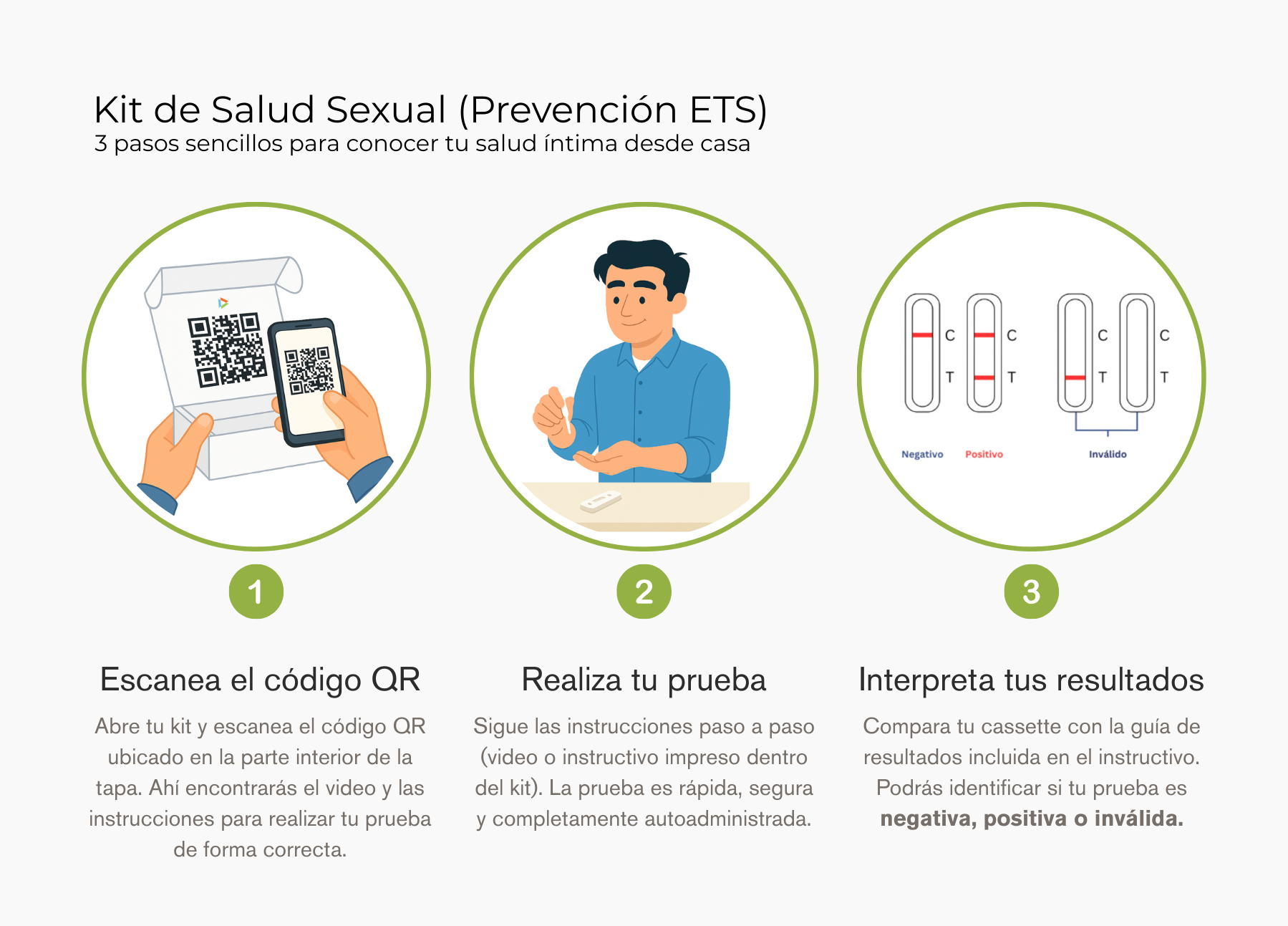 Es crucial mantener una buena salud sexual y prevenir la propagación de infecciones. Este Kit Permite la detección temprana de ETS, incluso cuando no hay síntomas, lo que facilita el tratamiento oportuno y evita complicaciones a largo plazo, así como la transmisión a otras personas.En este kit encontrarás una prueba para detección de:
